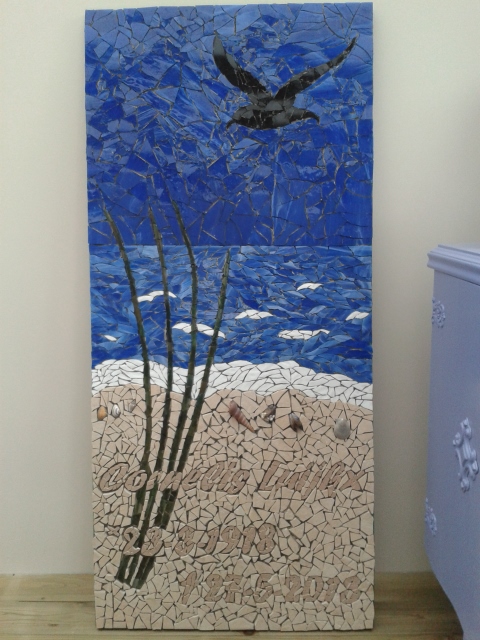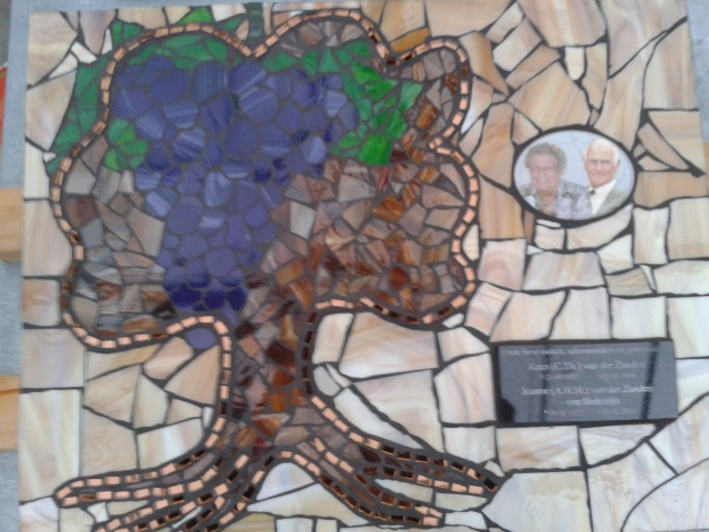 Graag help ik u bij de tot stand koming van dit gedenkteken, waarin uw persoonlijke herinnering aan de overledene wordt verwerkt. Samen maken we een ontwerp, kiezen we een vorm en de kleuren van de materialen. Het gedenkteken wordt gemaakt van glas en tegelmozaiek. Materialen, die vorst en hoge temperaturen kunnen doorstaan, die kleurvast zijn en weinig onderhoud vragen.